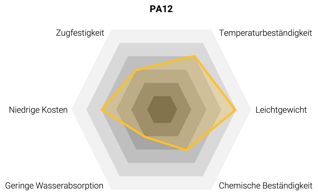 PA12 MaterialEin flexibles, wenig Feuchtigkeit absorbierendes Polyamid, das für seine Schlagfestigkeit, chemische Beständigkeit und geringe Dichte bekannt ist. PA12 wird in Kraftstoffleitungen für Autos, medizinischen Schläuchen und Industriekomponenten verwendet. Es bietet gute Dimensionsstabilität, Zähigkeit und Flexibilität und ist daher ideal für Anwendungen, bei denen Haltbarkeit und leichte Leistung erforderlich sind.