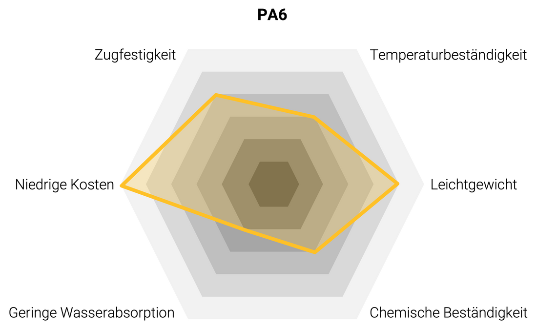 PA6 MaterialEin vielseitiger technischer Kunststoff, der für seine Zähigkeit, Verschleißfestigkeit und gute Schlagfestigkeit bekannt ist. PA6 verfügt über hervorragende mechanische Eigenschaften und eignet sich daher für Automobilkomponenten, Industriemaschinen und Textilien. Es bietet außerdem eine gute Beständigkeit gegen Chemikalien und Abrieb, ist jedoch feuchtigkeitsempfindlich.