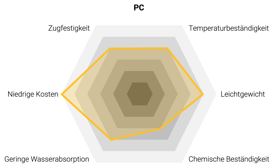 PC MaterialEin robuster, nichtkristalliner Thermoplast, der für seine hervorragende Schlagfestigkeit, Transparenz und Dimensionsstabilität bekannt ist. Er bietet außerdem gute Flammhemmung und Wetterbeständigkeit, was ihn ideal für Anwendungen in der Optik, Elektronik und für Automobilteile macht. PC wird häufig in Linsen, elektrischen Komponenten und medizinischen Geräten verwendet.