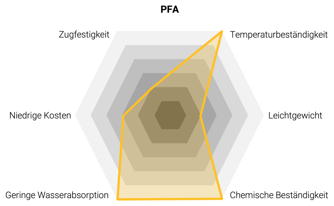 PFA MaterialEin vollständig fluorierter Thermoplast, der für seine Antihaftwirkung, hohe Temperaturbeständigkeit und chemische Inertheit bekannt ist. PFA wird aufgrund seiner außergewöhnlichen thermischen Stabilität und Beständigkeit gegen aggressive Chemikalien in der Halbleiterherstellung, der chemischen Verarbeitung und als Hochleistungsdrahtisolierung verwendet.