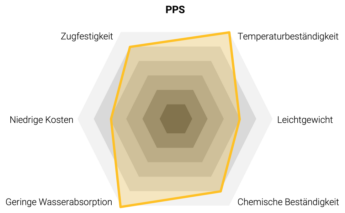PPS MaterialEin kristalliner Super-Technischer Kunststoff mit außergewöhnlicher Hitze- und Chemikalienbeständigkeit. Er weist mechanische Festigkeit, geringe Wasseraufnahme und Ölbeständigkeit auf und eignet sich daher für Hochleistungsanwendungen wie Elektronik, Automobil und Industriekomponenten. PPS wird häufig als Metallersatz in rauen Umgebungen verwendet.