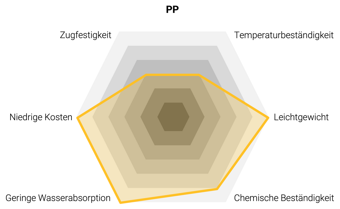 PP MaterialEin leichter und vielseitiger Thermoplast, der für seine gute chemische Beständigkeit, hohe Dauerfestigkeit und niedrigen Kosten bekannt ist. Er ist hervorragend feuchtigkeitsbeständig und wird häufig für Verpackungen, Automobilkomponenten, Textilien und Konsumgüter verwendet. PP bietet außerdem eine gute Flexibilität und Schlagfestigkeit.