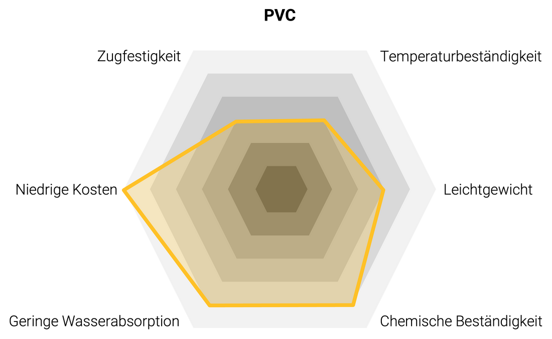 PVC MaterialEin vielseitiger thermoplastischer Kunststoff, der für seine Langlebigkeit, chemische Beständigkeit und einfache Verarbeitung bekannt ist. Er wird häufig im Bauwesen, bei elektrischen Isolierungen und in Rohrleitungssystemen verwendet. PVC kann sowohl für starre als auch für flexible Anwendungen formuliert werden und bietet gute Flammhemmung und Witterungsbeständigkeit.