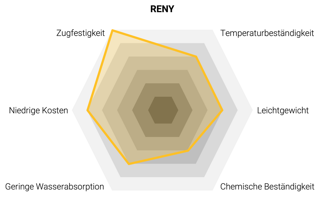 RENY MaterialEin glasfaserverstärkter kristalliner Thermoplast, der für hohe Festigkeit, Steifigkeit und Hitzebeständigkeit entwickelt wurde. Er wird häufig als Ersatz für Metalle in anspruchsvollen Anwendungen eingesetzt. Reny bietet hervorragende mechanische Eigenschaften, chemische Beständigkeit und Dimensionsstabilität und ist daher ideal für die Automobil-, Elektronik- und Bauindustrie.