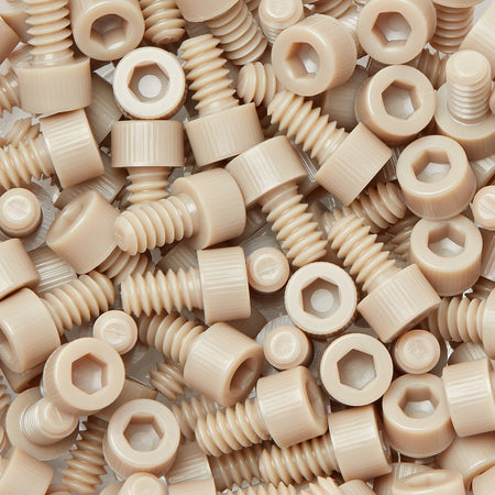 Imperial PEEK (SHCS) Socket Cap Screws - UNC (ASME B18.3), available in thread sizes ranging from 2-56 to 3/8-16 and lengths from 1/8" to 1-1/2", are high-performance fasteners made from Polyether Ether Ketone (PEEK). This advanced thermoplastic is known for its outstanding mechanical properties, including high tensile and compressive strength, excellent thermal stability, and superior chemical resistance. The socket cap design allows for easy installation with hex keys, providing a secure and flush finish. PEEK's lightweight and non-conductive nature further enhances its suitability for a variety of industrial and technical applications where reliability and durability are paramount.