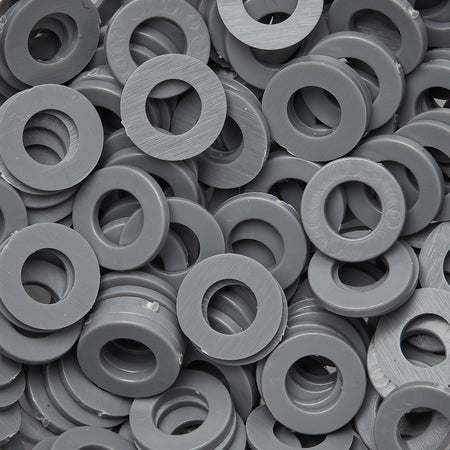 PVC (Polyvinyl Chloride) flat washers are great polymer washers for use in high UV environments and applications that involve exposure to large quantities of water.