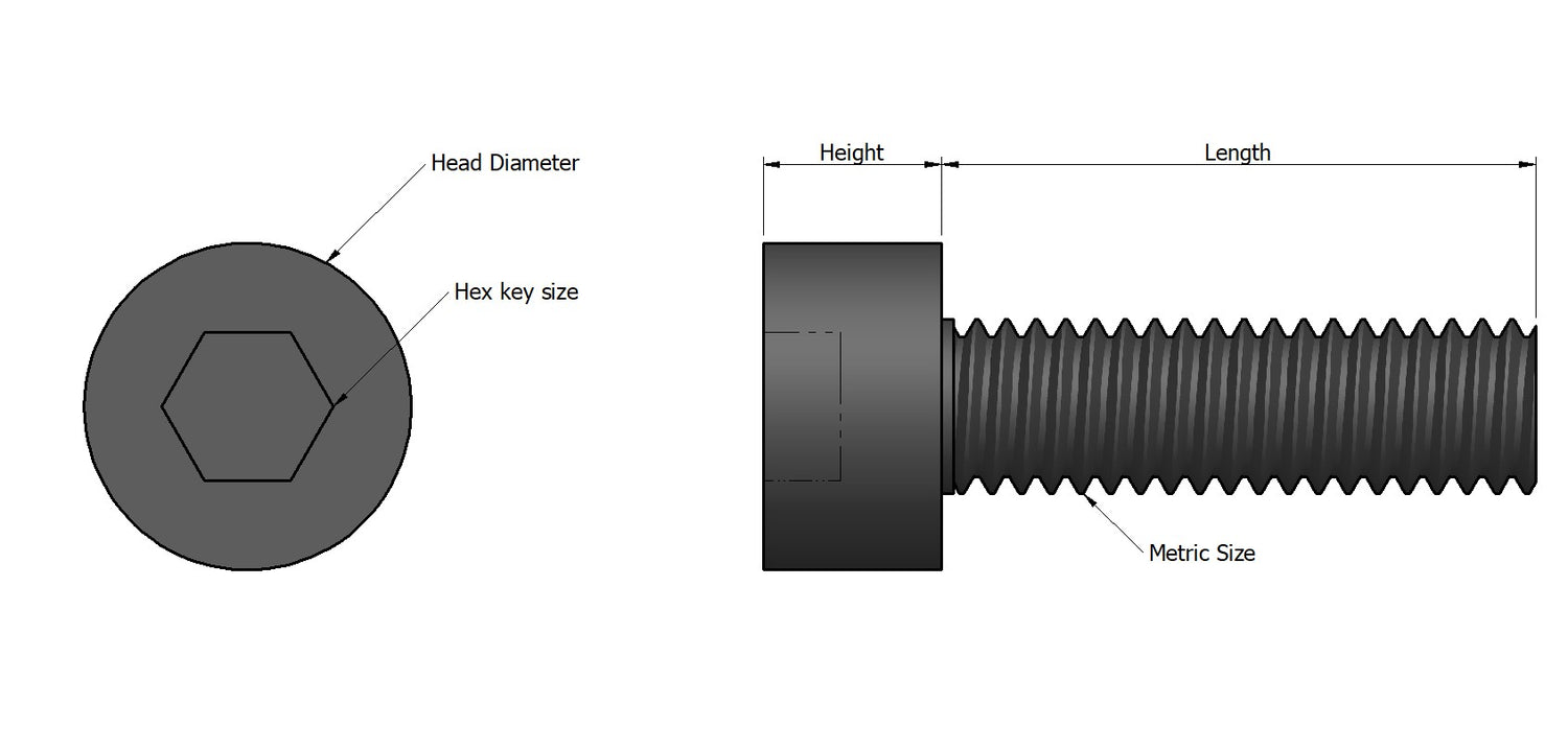 All the RENY socket cap head screws available on our website are compliant to the DIN912 specification. The standard drive type available for these screws is 6 point hexagonal drive through the use of a hex key (the drive sizes can be found on the dimensions table).