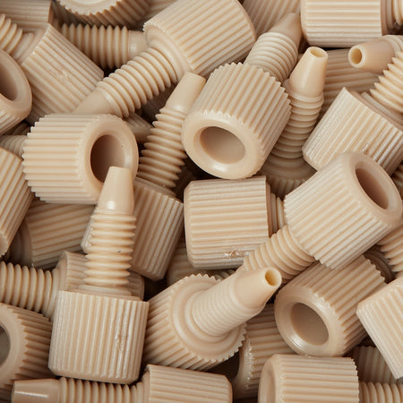 Mechanical Strength: PEEK finger-tight fittings provide excellent mechanical properties, including high tensile strength and toughness, ensuring robust performance and reliability in demanding laboratory environments.