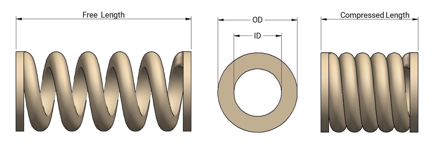 Dimensions for PEEK Compression Spring in all available sizes are shown according to the product drawing above.