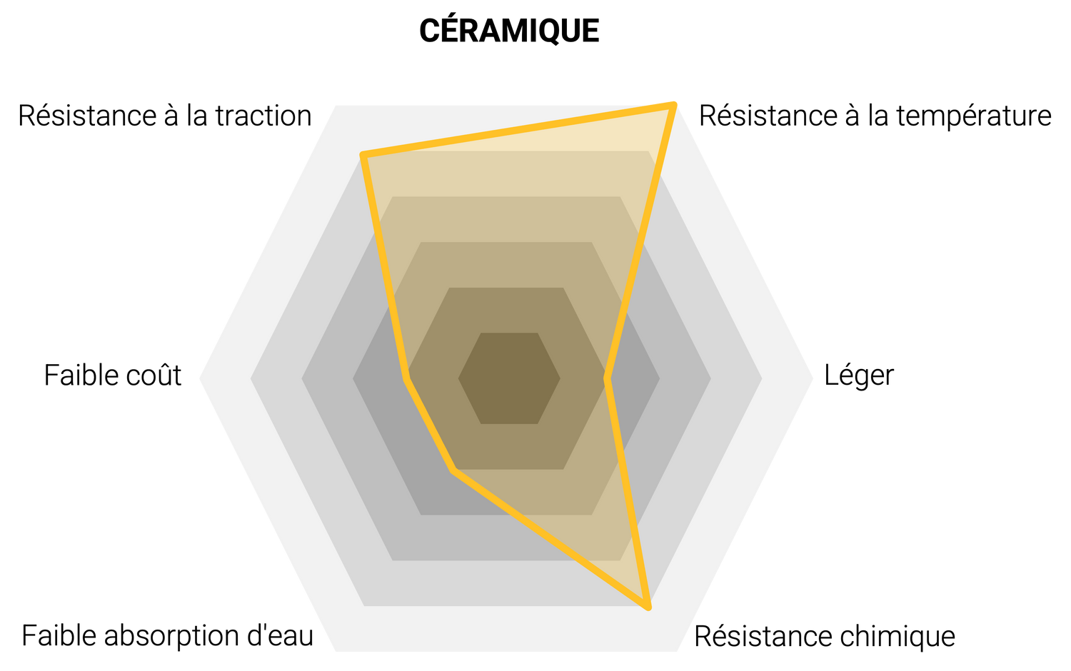 Suivez le lien ci-dessous pour consulter notre fiche technique Ceramic . Cela inclut des propriétés telles que la résistance mécanique, électrique, thermique et chimique.