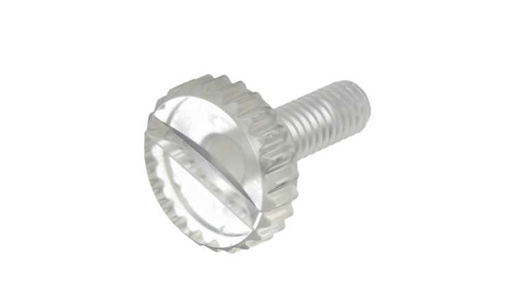 Les vis moletées en polycarbonate (PC) avec filetage en acier inoxydable sont disponibles en tailles métriques M3 et M4.