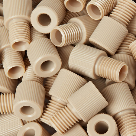 Stabilité dimensionnelle : Le PEEK conserve sa stabilité dimensionnelle même dans des conditions de température et de pression fluctuantes, garantissant des performances constantes et un ajustement sûr au fil du temps. Cette propriété contribue à la fiabilité et à la longévité du système chromatographique.