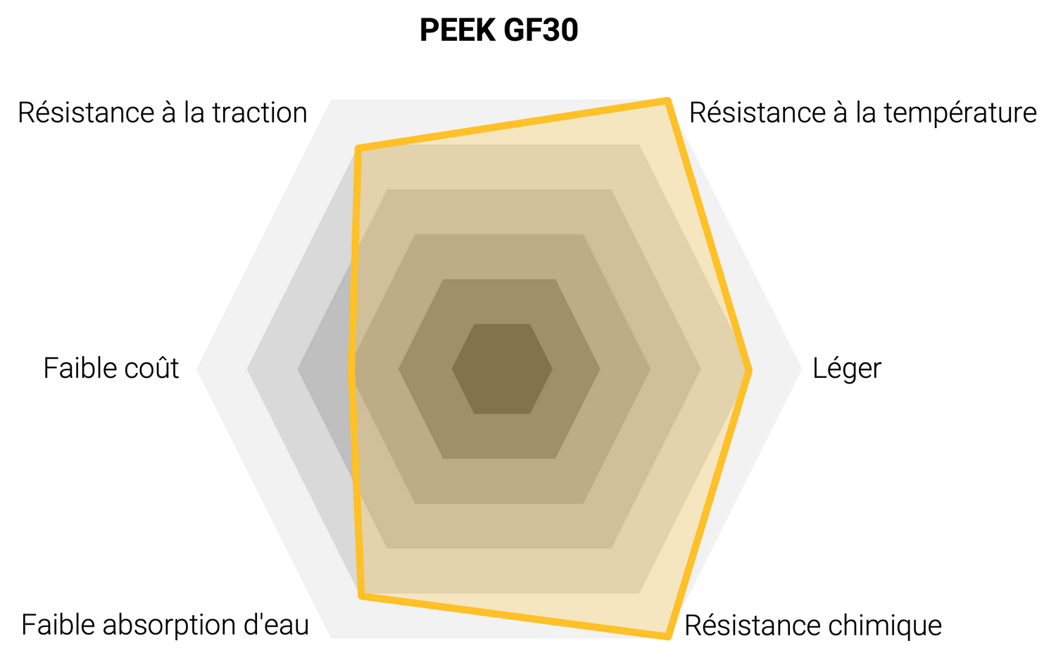 Clé Polyether Ether Ketone GF30 (PEEK GF30) - 30% Glass Fibre Reinforced Propriétés