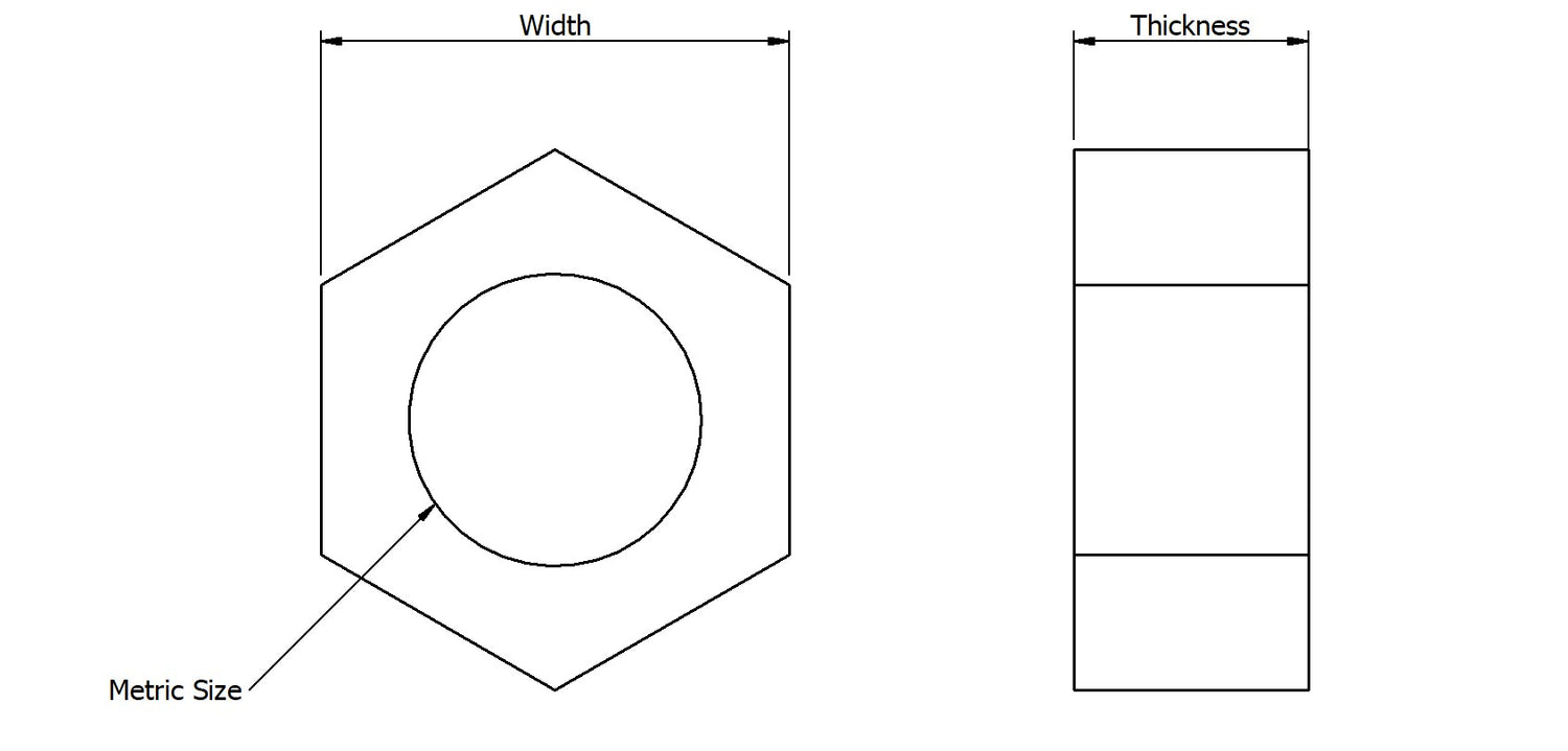 M Size Pitch (mm) Width (Flat-Flat) (mm) Thickness (mm)