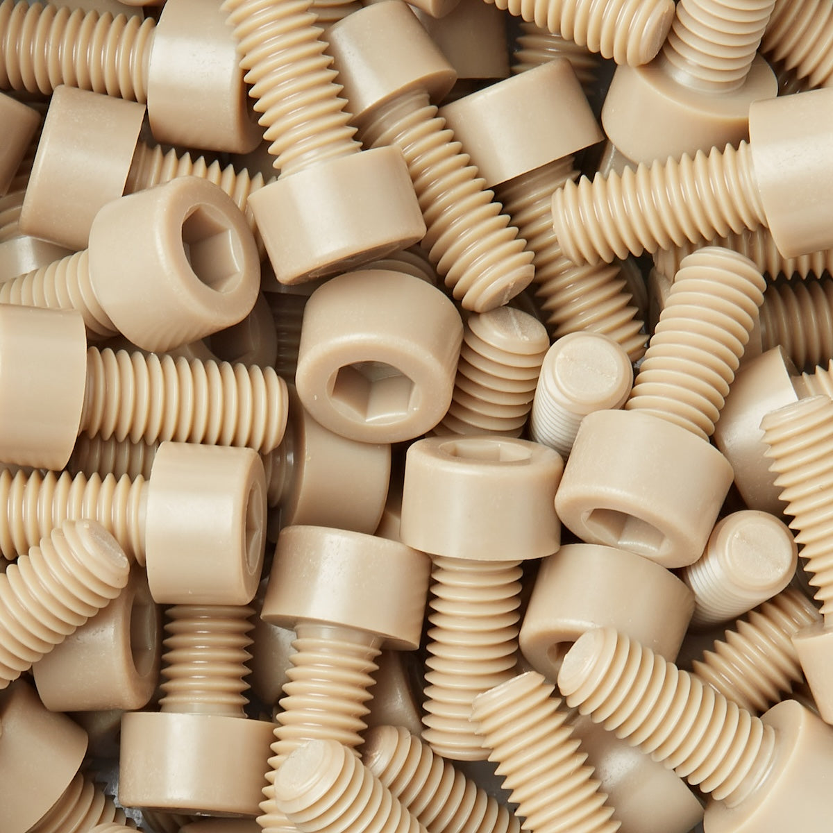 Le viti a bussola consentono una moltitudine di applicazioni grazie al tipo di fissaggio, al tipo di azionamento e alla resistenza. Le nostre viti con calotta in PEEK standard sono molto apprezzate in quanto conformi alle specifiche DIN912. Il materiale PEEK GF30 non cambia questo aspetto e fornisce una maggiore resistenza alla trazione per soddisfare le applicazioni più esigenti.