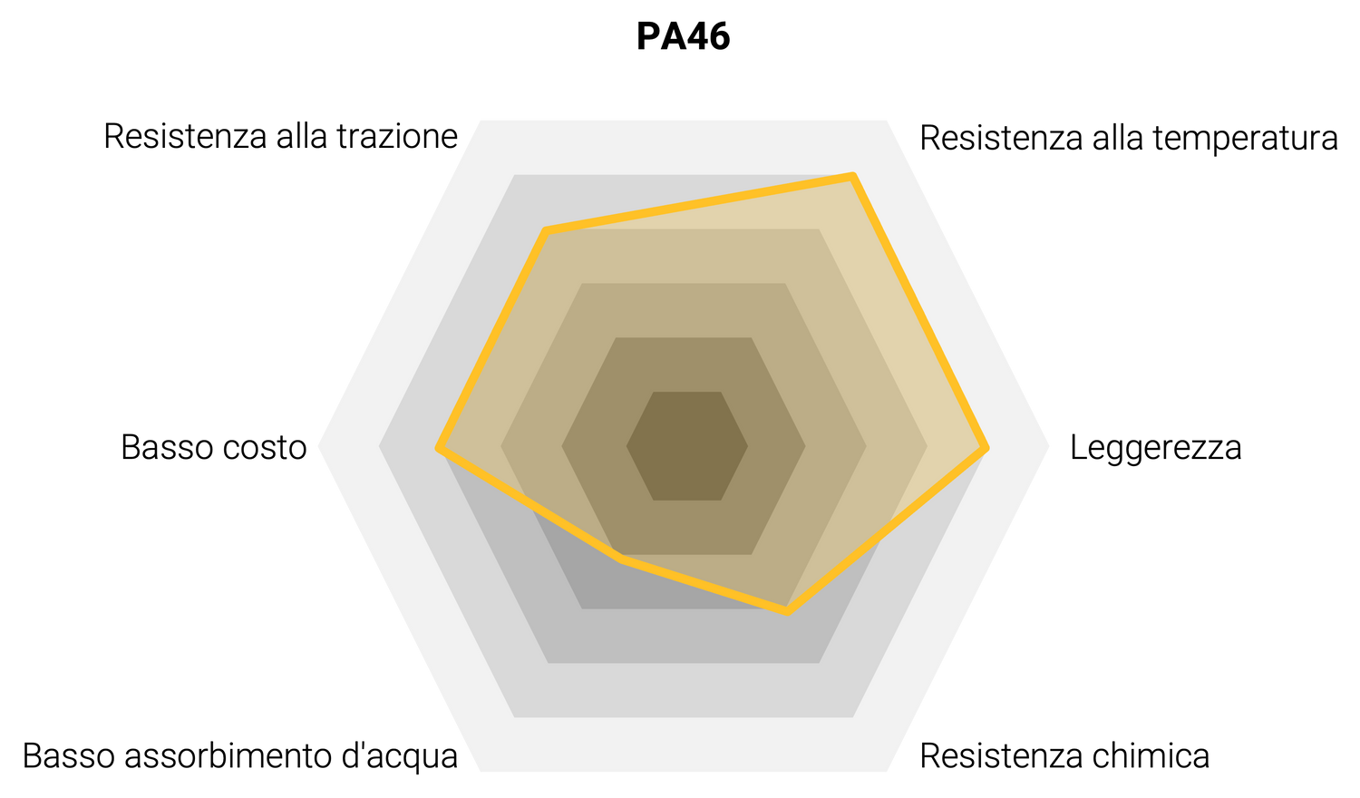 - Basso assorbimento di umidità, per garantire la stabilità dimensionale in condizioni di umidità o bagnato.
