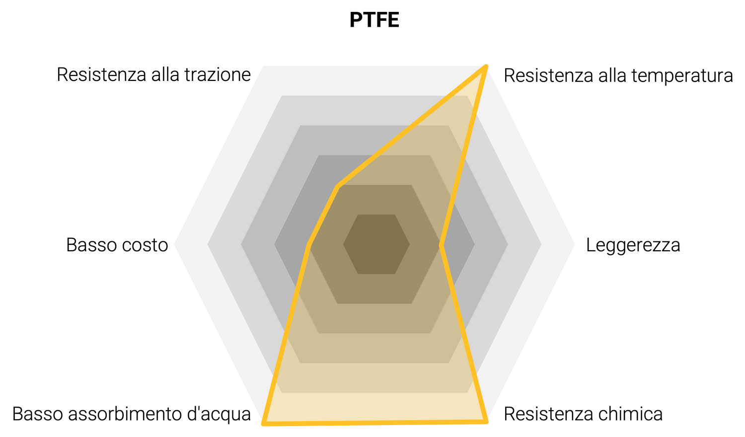 Caratteristiche chimiche del PTFE rispetto ad altri polimeri ad alte prestazioni