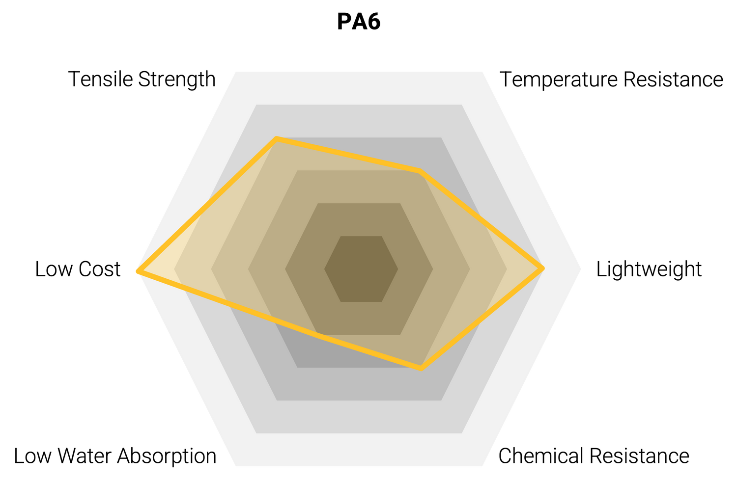• Polyamide Nylon (PA6) also offers good chemical and thermal resistance, making it versatile for various industrial applications. PA6 is resistant to many oils, greases, fuels, and chemicals, which allows it to perform well in environments where exposure to such substances is common. Its thermal resistance enables it to maintain its mechanical properties at elevated temperatures, making it suitable for applications that involve heat, such as engine components and electrical insulators. The combination of chemical and thermal resistance ensures that PA6 can be used in challenging environments without compromising its durability or functionality.