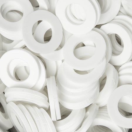 Polypropylene (PP) flat washers are a great general use polymer washer and are commonly utilised in a wide range of applications. PP is one of the lightest materials we provide with a specific gravity of 0.9. This paired with excellent chemical and hydrolysis resistance and electrical insulation makes PP a great fastener for general use applications.