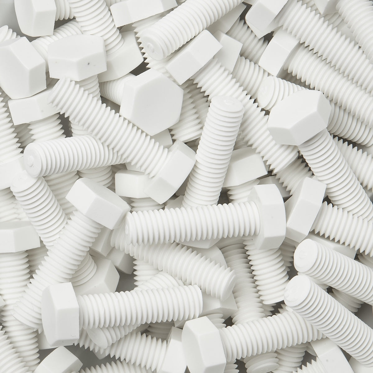 Polypropylene (PP) bolts can be used in combination with an array of different material fasteners depending on application. Available in standard metric sizes (M4- M12).