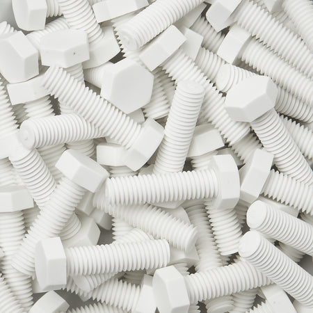 Polypropylene (PP) Hexagon Bolts are a great general use polymer bolt and are commonly utilised in a wide range of applications. PP is one of the lightest materials we provide with a specific gravity of 0.9. This paired with excellent chemical and hydrolysis resistance and electrical insulation makes PP a great fastener for general use applications.